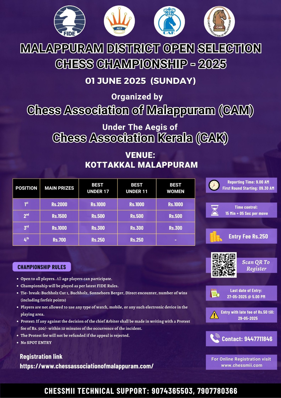 MALAPPURAM DISTRICT OPEN CHESS SELECTION CHAMPIONSHIP 2025